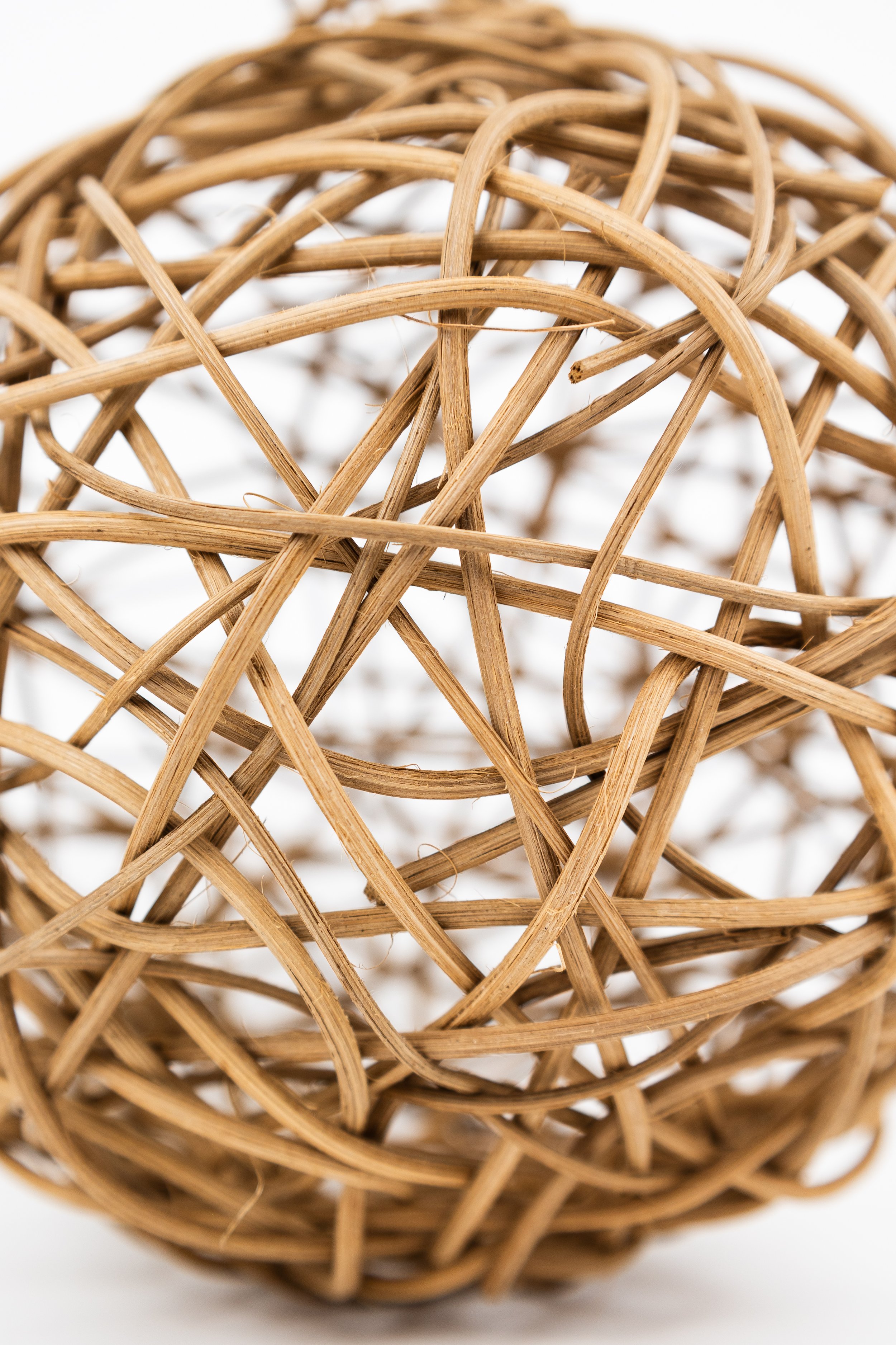Made from dyed and natural rattan reed interlaced in the random weave technique, these baskets are one-of-a-kind. Somewhere between function and decoration, these pieces can hold dried flowers or simply live on your mantle. Each one features a unique combination of colors, density, and weave. This technique offers a form of meditation that shows through to the final objects.